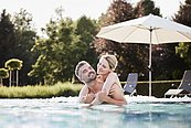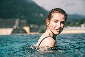 Wie Nebel ziehen weiße Schwaden über das warme Wasser. Sie entspannen im Pool, während draußen Menschen dicke Jacken tragen. Das ist Thermen-Urlaub. |