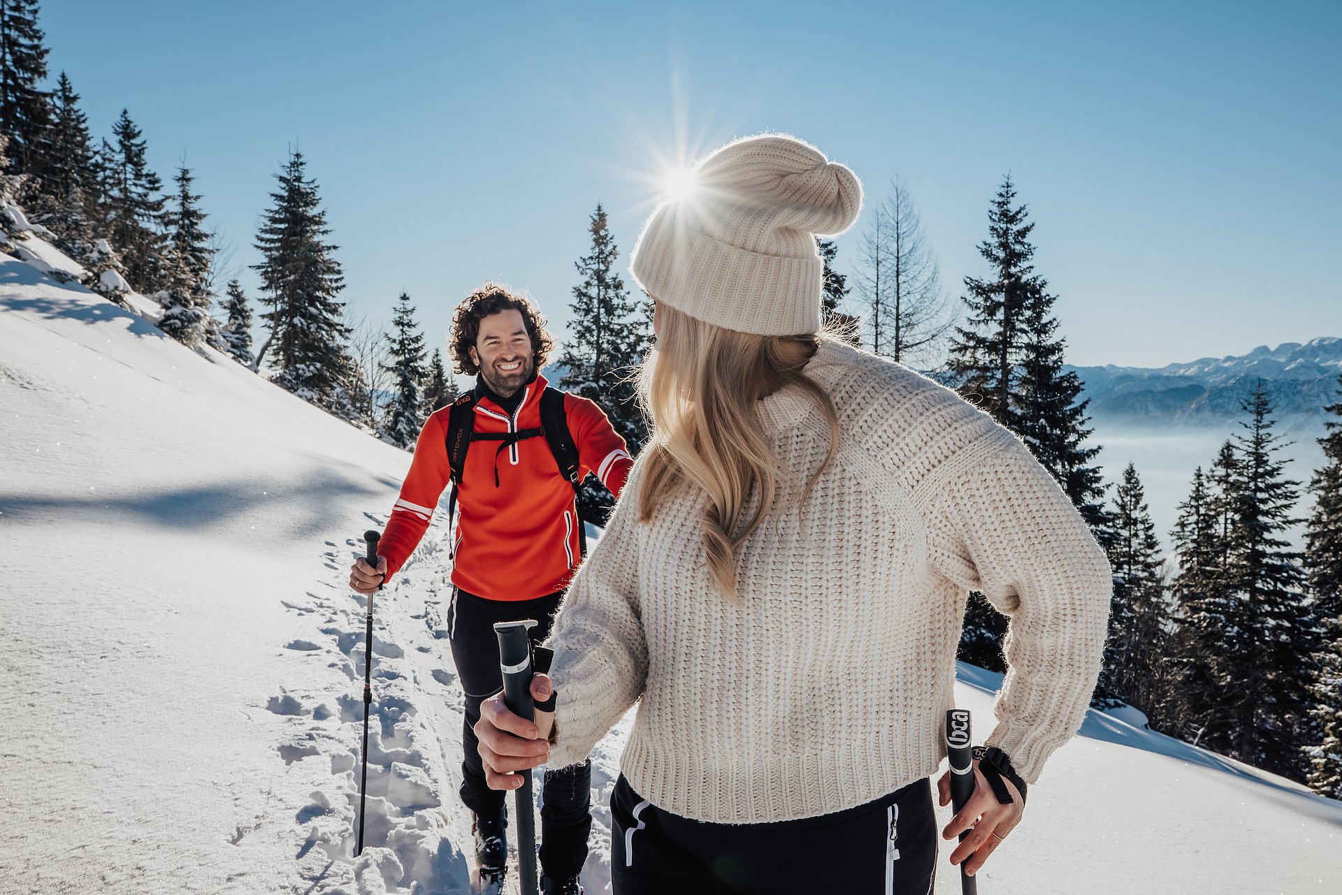 Eindrucksvolle Landschaft und vielfältige Wintererlebnisse treffen aufeinander: Willkommen im Salzkammergut! Am Dachstein Krippenstein wird die Natur zur Bühne: Hochalpiner Karst, die spektakuläre Welterbespirale und die 5fingers-Plattform schaffen eine Kulisse, die Schneeschuhwanderungen oder Skitouren zu einem unvergesslichen Erlebnis machen. Auch das Hochplateau des Feuerkogels ist bestens gerüstet, denn hier führen sechs beschilderte Schneeschuhtrails von kurzen Runden bis hin zur 4-Stunden-Tour zur Rieder Hütte. Ebenso ideale Bedingungen finden Schneeschuhwanderer am Kasberg in Grünau vor.